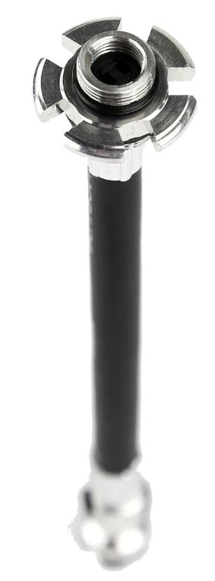 Het fijne van pompen met een ABS Flex Hose is dat je tijdens het pompen geen wrikkende beweging maakt tussen ventiel en velg. Op de ABS Flex Hose zit een Valve Core Tool. De Alloy Drive is netjes op het frame te monteren, zonder uitstekende delen. Dit kan op de nokjes van de bidonhouder gemonteerd worden, tussen het frame en de bidonhouder. De framehouder wordt met de Lezyne Alloy Drive meegeleverd!