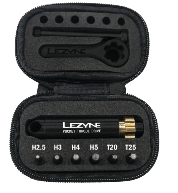 De Lezyne Pocket Torque Drive is een compacte momentsleutel die makkelijk mee te nemen is dankzij de stevige en lichtgewichte opbergcase. Deze momentsleutel is gemaakt van duurzaam, machinaal bewerkt aluminium en de torsieratel is vooraf gekalibreerd. Het handvat kan worden losgekoppeld, zodat de Pocket Torque Drive compact en snel opgeborgen kan worden. Verder is de Pocket Torque Drive voorzien van 6 bits, waarmee u makkelijk en snel iets kan aandraaien onderweg. De kracht waarmee deze momentsleutel instelbaar is, ligt tussen de 2 en 6 Nm en is in stappen van een halve Nm in te stellen. Dankzij de magnetische bithouder zorgt ervoor dat de bitjes stevig blijven zitten tijdens het gebruik.